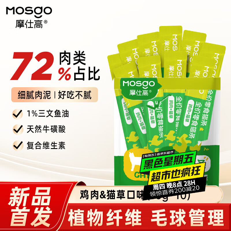 包邮 摩仕高猫零食猫条15g*10支含鱼油添加猫草化毛补充维生素通用罐头湿粮